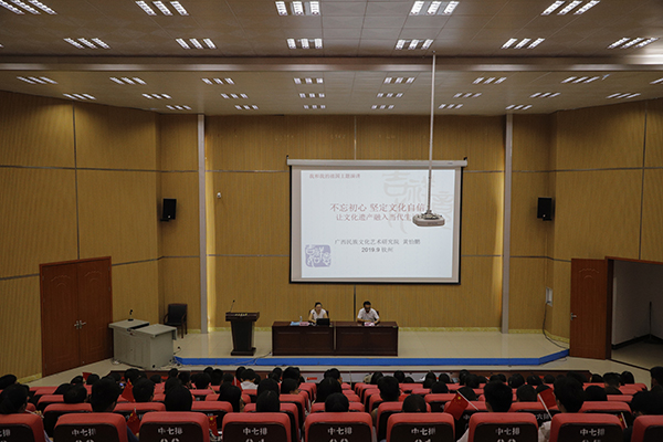 9月26号下午,学校在3-101报告厅举行“我和我的祖国——共和国故事进校园”主题宣讲活动,广西民族文化艺术研究院黄怡鹏研究员做题为《不忘初心,坚定文化自信,让文化遗产融入当代生活》的主题报告,党委宣传部、海洋文化研究中心、陶瓷与设计学院、人文学院的领导和老师以及学生代表参加。学校党委常委、宣传部部长马秀明主持报告会。报告会上,黄怡鹏研究员指出,党中央高度重视文化自信,强调保护好和传承好文化遗产,要...