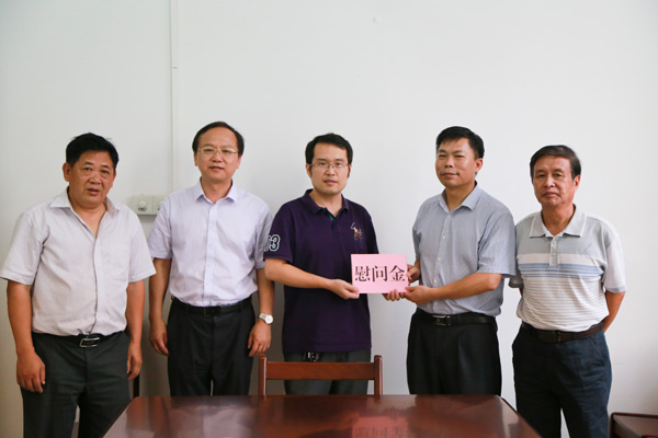 6月1日下午,钦州市科协党组书记黄岳联、杨耀川调研员、科普部温华成副部长一行3人到beat365官网慰问优秀科技工作者代表尹艳镇教授。学校副校长黄鹄、科技处处长冯国禄等陪同慰问。黄岳联书记代表市科协向尹艳镇教授及beat365官网科技工作者致以节日的慰问和祝福,希望beat365官网继续发挥人才优势,全力投身科技创新实践,更好服务地方经济社会发展。尹艳镇教授表示,今后要更加努力工作,在科研上取得更大更多的成绩。慰问现