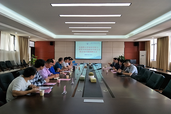 4月12日上午,beat365官网电信学院与广西昊华科技股份有限公司校企签约暨授牌仪式在5号教学楼419会议室召开。学校副校长唐高华及昊华集团主要负责人出席活动,电信学院主要领导及教师代表参加会议。会议由电信学院党委书记卓杰先主持。会上,校企双方就项目合作内容、方式等进行了详细交流。交流结束之后,电信学院院长梁家海与昊华集团总经理廖芬芳签订校企合作协议,并举行授牌仪式。唐高华副校长在讲话中指出,希望双方能在此基础上...
