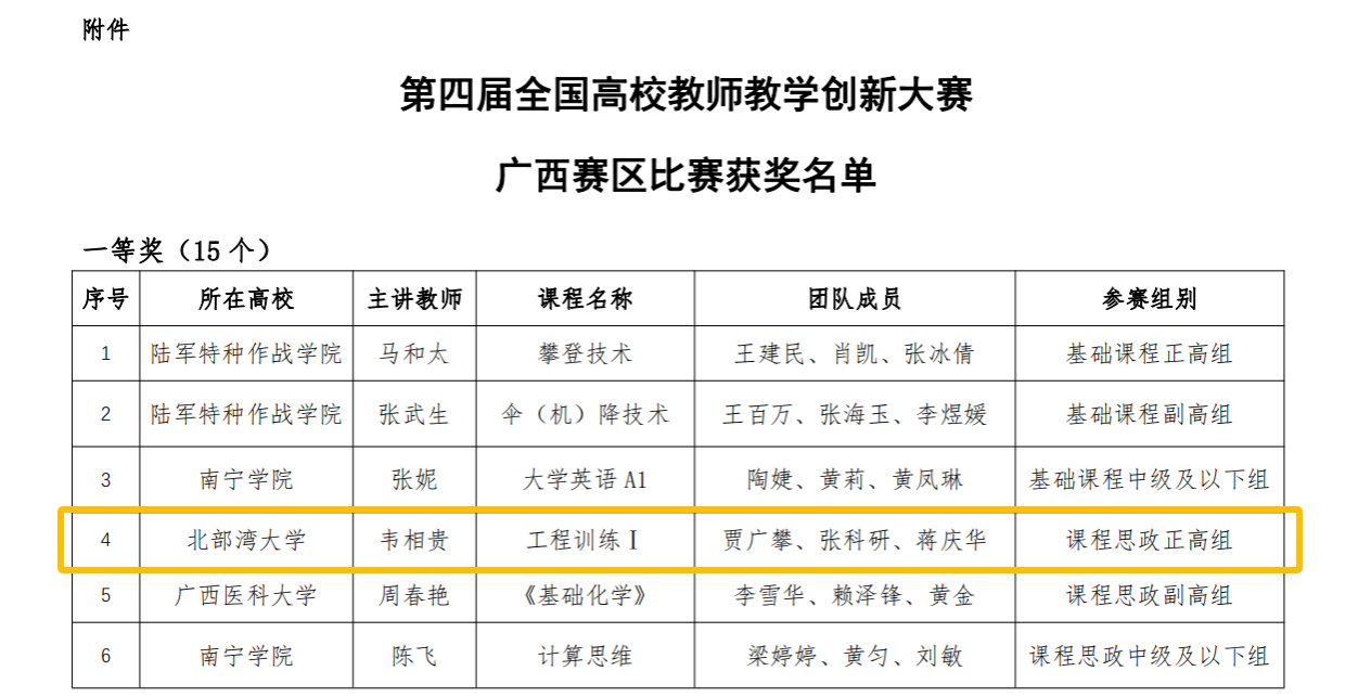 近日,第四届全国高校教师教学创新大赛广西赛区比赛获奖名单正式公布,beat365官网共有三个教师(团队)获奖。其中,机船学院韦相贵获课程思政正高组一等奖,并将代表广西参加第四届全国高校教师教学创新大赛,这也是beat365官网第三次进入国赛。建工学院周英明获课程思政正高组三等奖,资环学院林卉获新工科正高组三等奖,学校荣获优秀组织奖。广西第四届高校教师教学创新大赛由自治区教育厅指导、广西高等教育学会主办,广西大学承办。大赛共有218个教师(...
