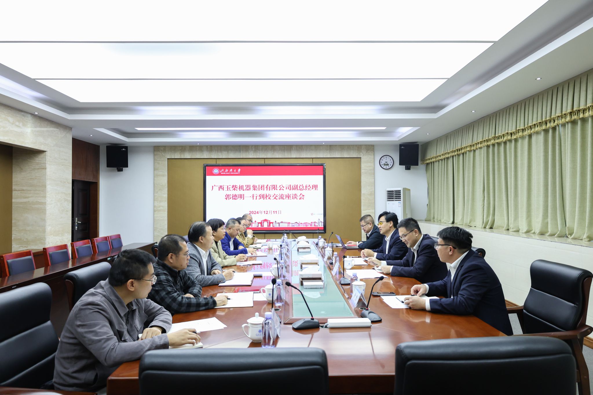 12月11日下午,广西玉柴机器集团有限公司党委委员、副总经理郭德明一行4人到校调研交流。校党委常委、副校长陆衡、闫松银出席座谈会。郭德明表示,希望与学校在创新研发、人才交流等方面进一步深入合作,依托发动机制造、物流及其供应链、新能源动力三大支柱产业,努力实现校企资源的有机结合和优化配置,构建产学研深度融合创新体系。陆衡简要介绍了学校的基本情况,并就双方合作提出展望。她希望,学校未来能够与广西玉柴机器集团有限公司深度合作,...