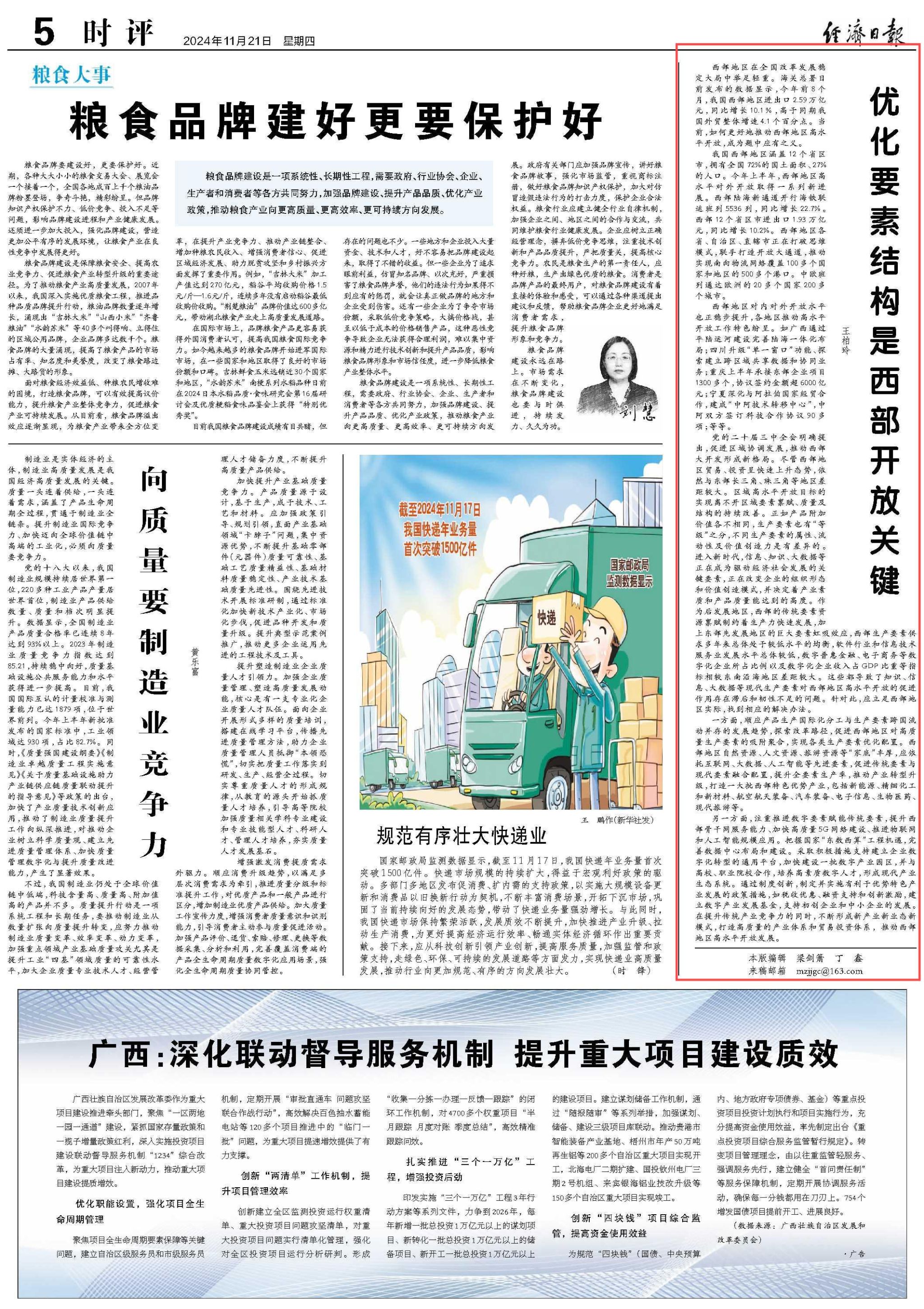 beat365官网教务处处长王柏玲教授撰写的文章《优化要素结构是西部开放关键》,在《经济日报》2024年11月21日时评版发表。王柏玲教授《优化要素结构是西部开放关键》一文,立足我国西部地区经济社会发展现状,指出不同生产要素的属性、流动性及价值创造力是有差异的。进入新时代,信息、知识、大数据等正在成为驱动经济社会发展的关键要素,生产要素的动态变化亟需优化区域要素结构。在此基础上,结合西部地区要素禀赋实际提出了未来推动区域高水平开放的相应解决办法。...