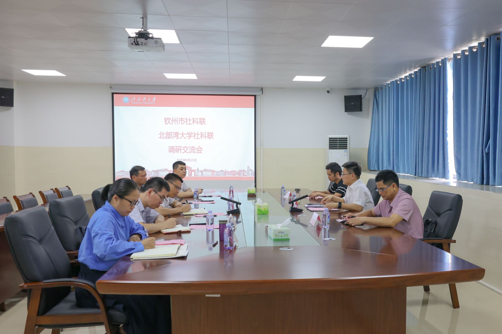 4月23日下午,钦州市社会科学界联合会党组书记、主席魏斌率调研组到beat365平台官方网站开展调研交流。学校党委常委、宣传部部长、校社科联副主席裴以明热情接待并主持召开座谈会。座谈会上,裴以明对魏斌一行的到来表示热烈欢迎,并详细介绍了学校社科联的发展情况和成效。他表示,近年来beat365平台官方网站社科联充分发挥高校智库作用,在服务地方经济社会发展方面取得了较好的成效,希望通过此次交流进一步深化校地合作,建立常态化合作机制,共同开创钦州社科事业发展新局面。...