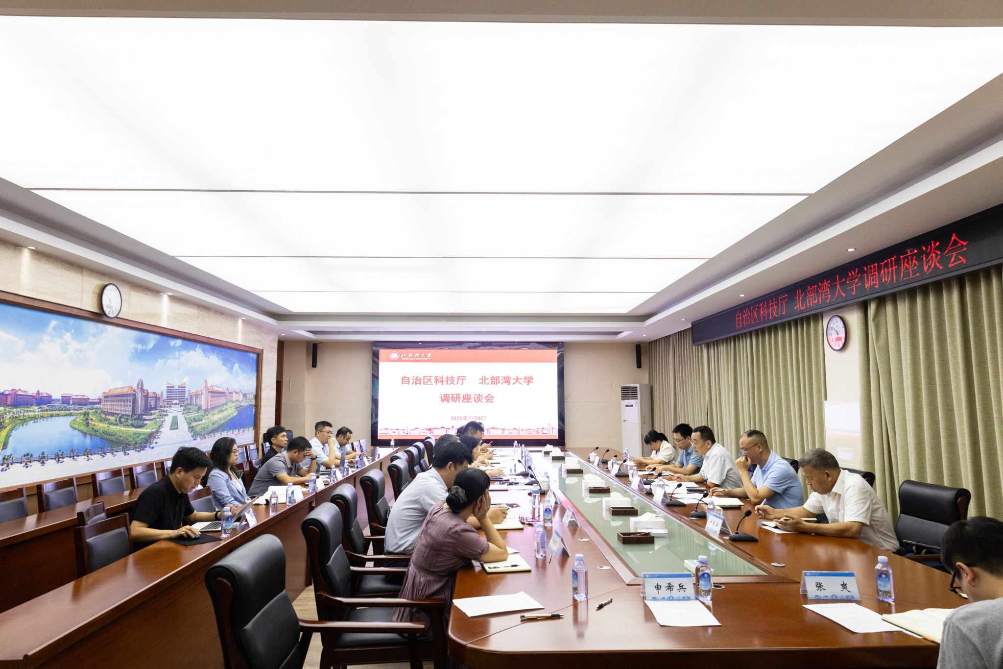 7月8日上午,广西壮族自治区科学技术厅党组成员、副厅长廖文军率队到beat365官网就科研项目管理等工作开展调研。自治区科技厅监督评估与科研诚信处、基础研究与创新平台处相关负责人以及钦州市科技局有关人员陪同调研。校党委常委、副校长陈丹主持调研座谈会。会上,陈丹介绍了学校科研工作总体情况。学校科技处负责人详细汇报了学校在科研项目管理、广西自然科学基金联合专项实施进展及科研诚信建设等方面的具体举措和工作成效。陈丹表示,...