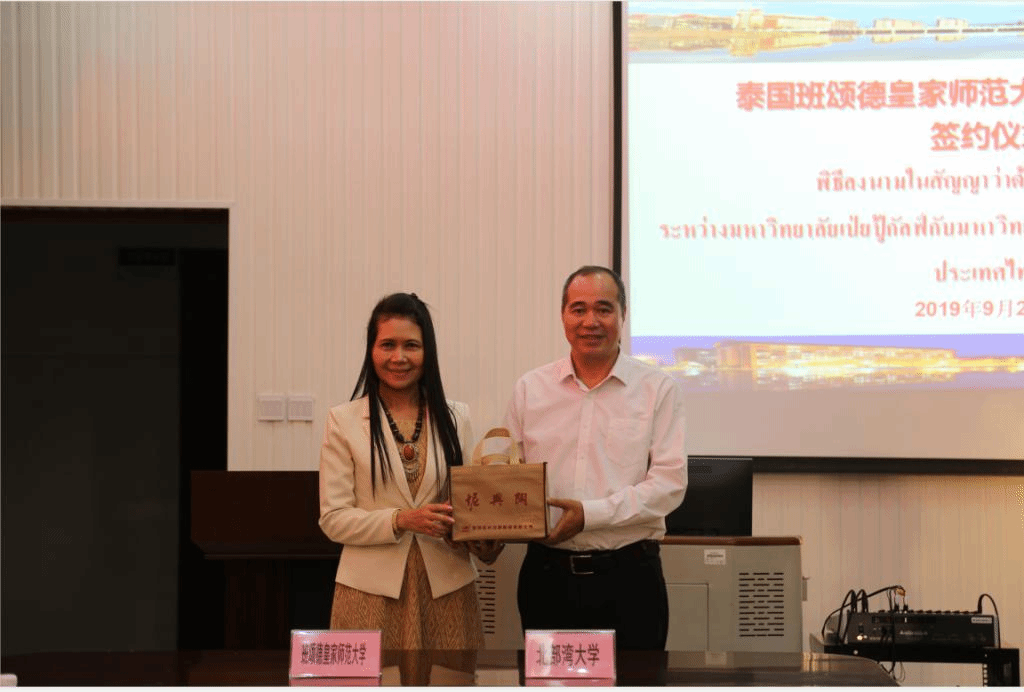 泰国班颂德皇家师范大学副校长灿拉达·蓬帕塔纳娜育天一行7人9月21日下午到访beat365官网,双方在教育学院1A-412会议室洽谈合作并签署了合作协议。学校副校长唐高华对一行来访表示了热烈的欢迎,并介绍了beat365官网历史沿革,办学发展以及和泰国高校的合作情况等。他表示,欢迎班颂德皇家师范大学的师生到校交流学习、开展科研合作等。灿拉达·蓬帕塔纳娜育天副校长对唐副校长的接待表示了感谢,她表示,beat365官网环境优美,办学硬件和设置齐全,是...