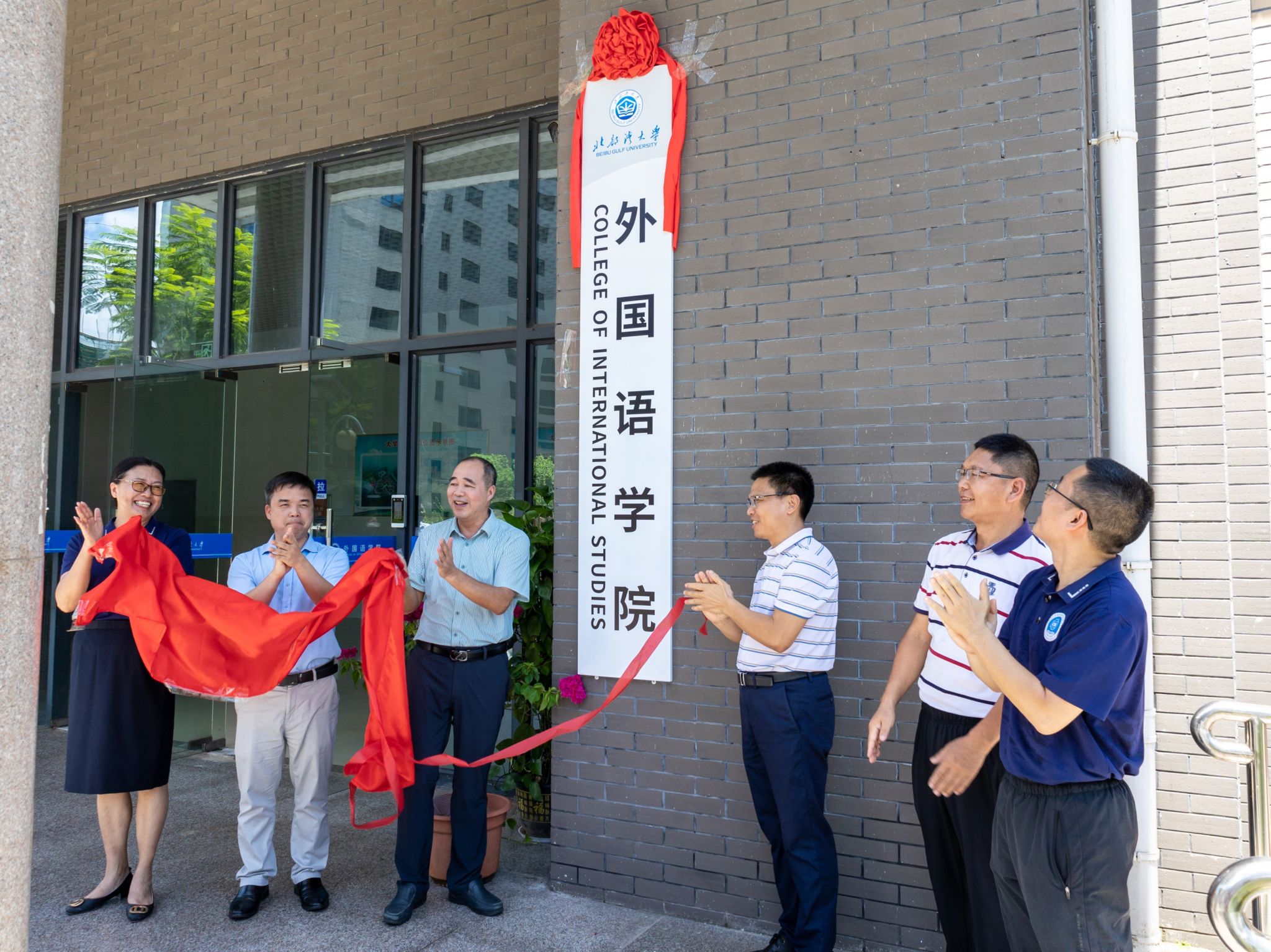 7月8日上午,beat365官网外国语学院揭牌仪式在大学生创业园举行。校党委副书记唐高华,校党委常委、宣传部部长裴以明,校长助理、校友办主任任才茂,党校办主任黎树式、外国语学院党委书记潘文昊和外国语学院院长冯丽共同为外国语学院揭牌。潘文昊主持揭牌仪式。唐高华指出,外国语学院的成立是学校国际化发展的重要组成部分,是提升学校整体教育教学质量的重要举措。外国语学院的成立,将进一步优化学校学科布局,提高国际化办学水平,促进外语类专业的稳步发展。...