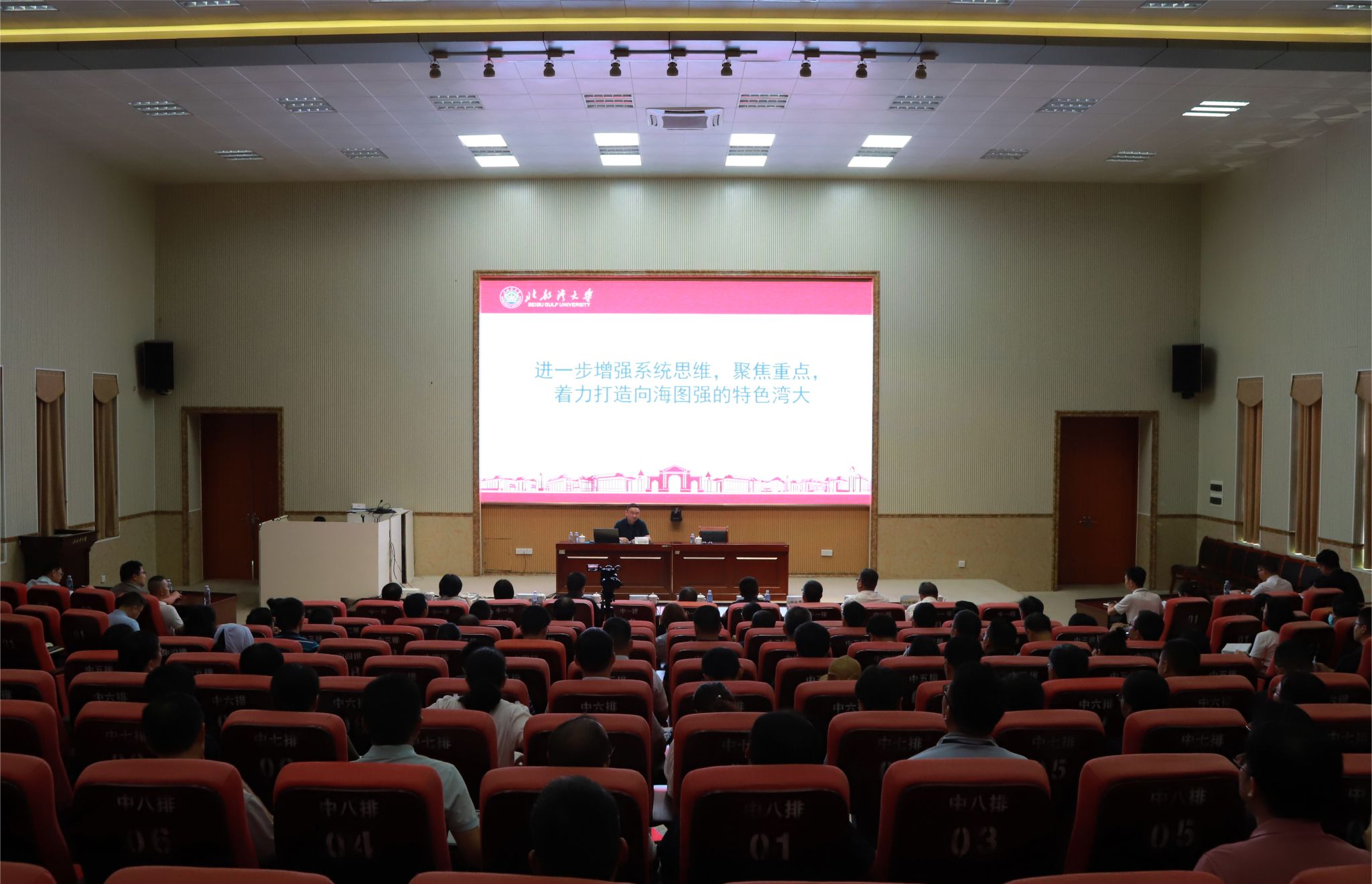 7月13日上午,学校党委副书记、校长苗剑在学校2024年干部培训班上以“进一步增强系统思维,聚焦重点,着力打造向海图强的特色湾大”为题为学校全体校领导,全体中层干部、各二级学院教研室主任做专题报告。校党委副书记陈磊主持。苗剑围绕着学校2025年—2035年的发展规划和发展愿景,深入分析了未来学校发展所面临的机遇和挑战,并对学校下一发展阶段的目标、要求与主要任务举措作了阐述和讲解。他表示,面向未来十年的发展,学校上下要深入学习贯彻习近平总书记关于广西工作论述的重要要求,...