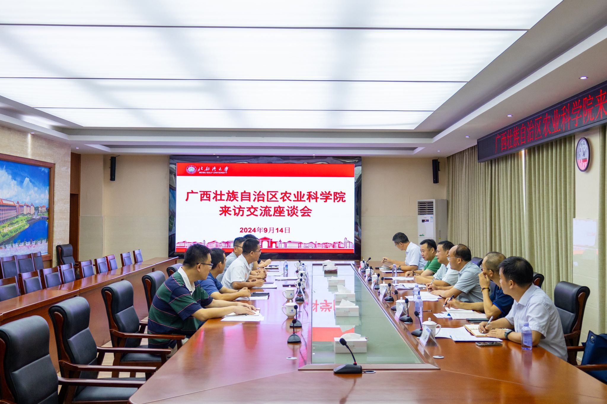 9月14日,自治区农业科学院党组成员、副院长陆宇明一行到beat365官网就调研交流。校党委副书记陈磊会见了调研组一行,校党委常委、副校长梁智出席会议调研交流会。会上,与会双方对本单位近年来的改革发展、科学研究、队伍建设、基建项目建设等方面进行了深入交流,双方充分肯定了校院双方科研团队开展科技合作取得的显著成效,并达成了深化教育、科技、人才交流与合作的共识。党办校办、宣传部、科技处、财务处、基建处相关负责人参加交流活动。...