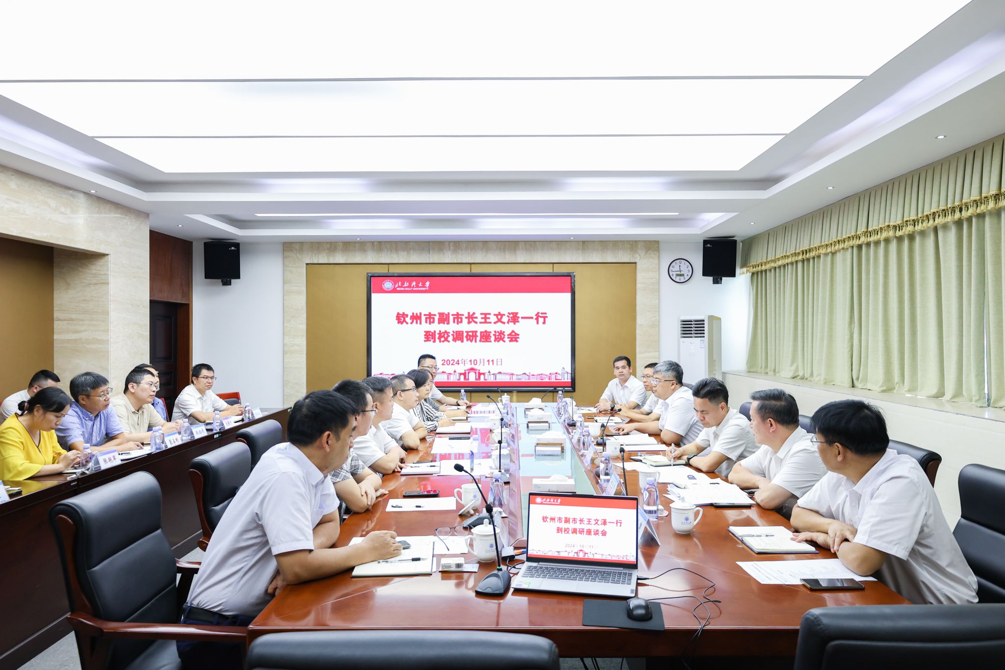 10月11日,钦州市副市长王文泽一行到校调研科技工作并开展座谈。校党委书记徐华蕊,校党委常委、副校长陈丹陪同调研并参加座谈会。座谈会由陈丹主持。会上,科技处相关负责人从重点学科建设、研发投入、研发成果、产学研合作、创新平台建设及管理等方面详细介绍了学校科技创新工作情况。王文泽充分肯定学校对钦州市发展建设的贡献。他表示,本次调研旨在深入贯彻党的二十届三中全会关于构建支持全面创新体制机制的部署要求和习近平总书记关于科技创新的重要论述精神,...
