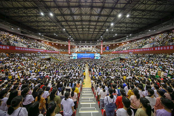 9月9日上午,学校在体育馆隆重举行2019级新生开学典礼。学校党委书记赵君,校长韩峻峰,副校长曾彦、黄鹄、唐高华,总会计师梁智以及党委常委陆衡、马秀明、任才茂出席典礼并在主席台上就座。典礼由党委副书记陈湘如主持。各职能部门、二级学院领导与七千多名包括本科生、研究生、留学生在内的新生参加典礼。可容纳万人的体育馆座无虚席。2019年是学校设立大学后扩大招生规模的第一年,是首次以“beat365平台官方网站”之名招收新生之年...