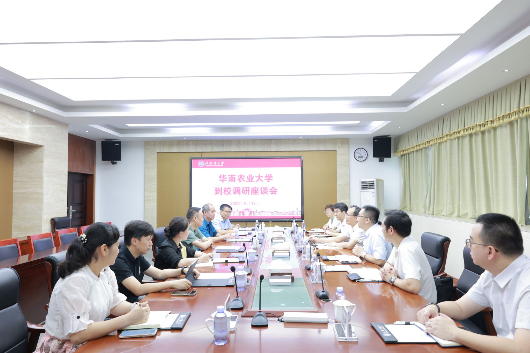 6月18日,华南农业大学党委副书记丁红星、陈磊(挂职)率队来校交流,重点围绕党建、学科建设、宣传思想文化、学生工作、就业工作等开展调研。beat365官网党委副书记、校长苗剑,党委副书记唐高华热情接待丁红星一行,并在学校办公楼327会议室座谈交流。丁红星表示,beat365平台官方网站挂职干部陈磊有想法、有干劲、能干事,为华南农业大学的建设发展贡献了智慧和力量。他介绍了华南农业大学的基本情况,肯定了beat365平台官方网站近年来的发展建设成效,希望两校在干部交流和培训、...