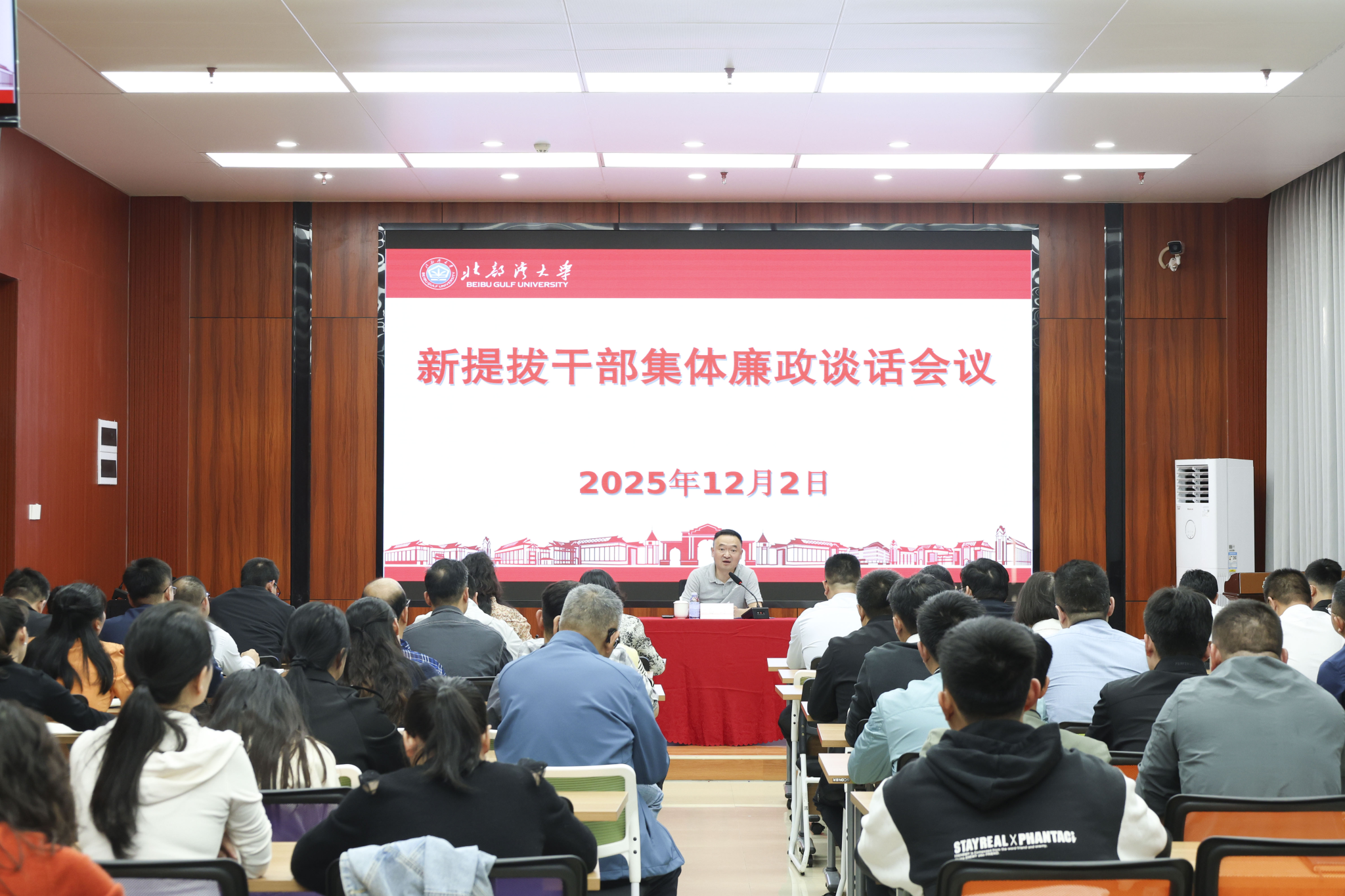 12月2日下午,学校在国际交流中心一楼4号培训室组织开展新提拔干部廉政谈话,校党委书记、校长苗剑对新提拔干部进行集体廉政谈话。谈话会议由驻校纪检监察组副组长、校纪委副书记黄学仁主持,2024年4月至今新提拔的科级及以上干部参加。苗剑表示,廉政谈话是深入贯彻党要管党、全面从严治党要求,强化对新提拔干部的教育监督管理,引导干部扣好履职“第一粒扣子”,筑牢拒腐防变思想防线的必要举措。他对新提拔干部提出了四点要求:...