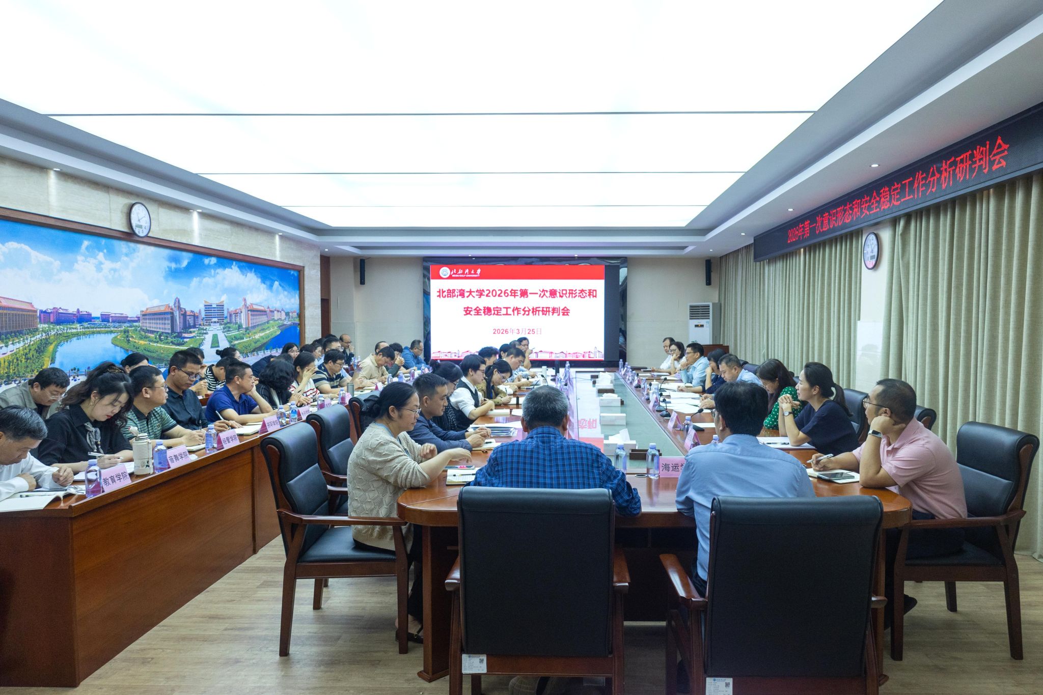 3月25日,学校在办公楼523会议室召开2026年第一次意识形态和安全稳定工作分析研判会,深入学习贯彻习近平总书记关于意识形态工作、安全生产工作的重要论述,全面落实上级关于巡视整改及高校意识形态和安全稳定工作的部署要求,分析当前形势,部署重点任务。校党委常委、副校长陆衡、闫松银出席会议并讲话。会议强调,2026年是“十五五”开局之年,全校各单位、各部门要进一步提高政治站位,深化思想认识,切实增强做好意识形态和安全稳定工作的责任感、...