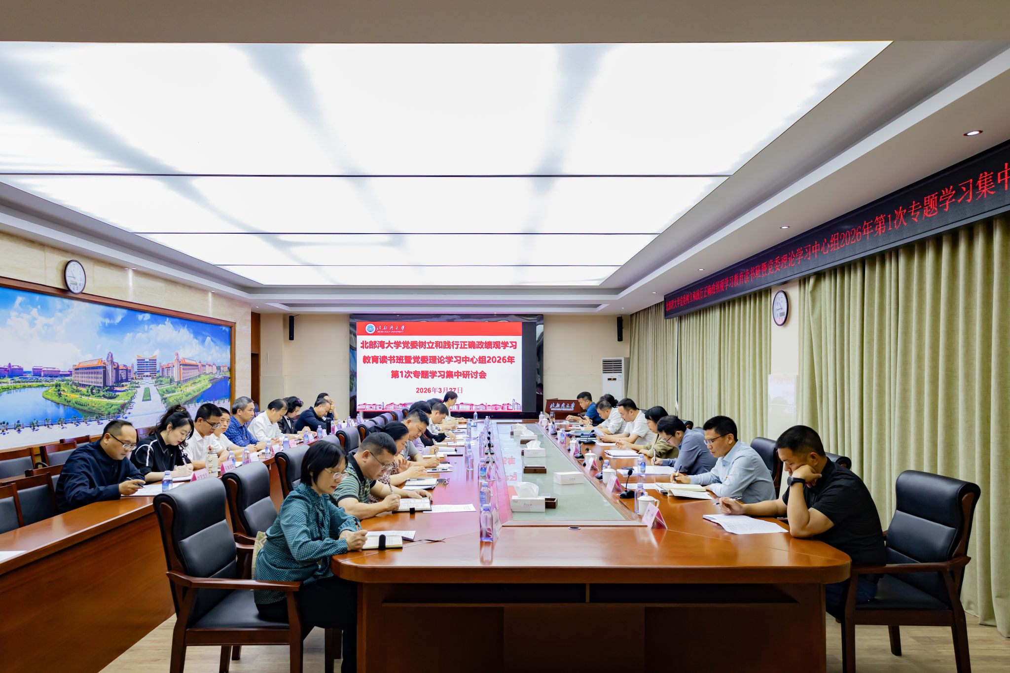 3月27日,学校党委在办公楼523会议室开展树立和践行正确政绩观学习教育读书班暨党委理论学习中心组2026年第1次专题学习集中研讨,深入学习习近平总书记关于树立和践行正确政绩观的重要论述。校党委书记、校长苗剑主持并讲话。本次读书班暨中心组学习采取个人自学、集中研讨等方式进行。在集中研讨中,苗剑导读学习了《习近平关于树立和践行正确政绩观论述摘编》并发言,中心组成员陈丹、闫松银、杜树营、黄瑜、任才茂分别发言,紧扣学习主题,...