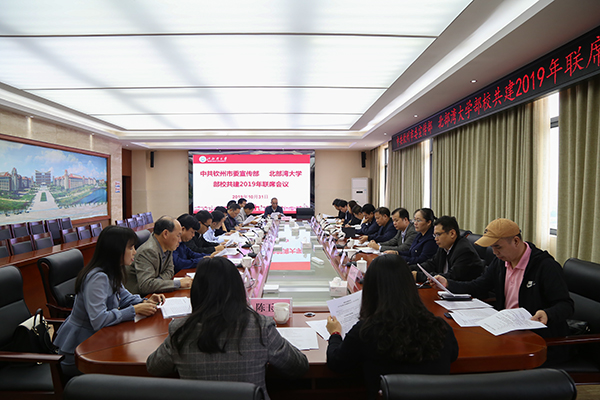 10月31日上午,钦州市委宣传部与学校部校共建2019年联席会议在办公楼523会议室召开。钦州市委常委、秘书长陆明,学校党委副书记陈湘如出席会议。会议由陈湘如主持。会上,马克思主义学院和人文学院、联席会议成员单位分别汇报了2019年共建工作进展情况及工作计划。与会人员围绕马克思主义和人文学院提出的三个共建议题展开讨论,并结合本单位实际提出了意见建议。陆明就如何扎实推进部校共建提出三点意见。一是要切实提高政治站...