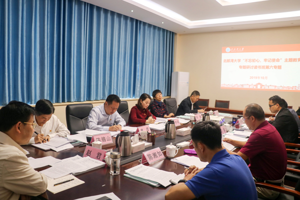 10月29日,学校在302会议室举行“不忘初心、牢记使命”主题教育专题研讨读书班第七专题学习会,全体在钦校领导参加。会议围绕“加强政治建设,全面从严治党”的主题开展学习研讨。学校党委书记赵君、副书记陈湘如、总会计师梁智作中心发言。会议由赵君主持。陈湘如认为,加强政治建设就是要求我们旗帜鲜明讲政治,扎实推进严纪律。他就学校辅导员队伍存在的问题,提出以政治建设为统领,坚持“两业”同步,打造职业认同教育体系...