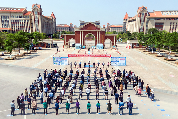 4月14日下午,学校在南门举行新冠肺炎疫情防控应急演练动员会。学校疫情防控领导小组全体成员参加。动员会由党委副书记陈湘如主持。动员会上,学校党委书记赵君指出,举行疫情防控演练,就是要把防控各项工作扎实做好,确保万无一失,用实际行动保证师生员工的生命安全和健康。赵书记强调,学生没有进校,所有方案还都是纸上谈兵;学生入学,战役才真正开始。他要求党员带头、干部带头,全体师生员工继续发扬beat365平台官方网站“干则干...