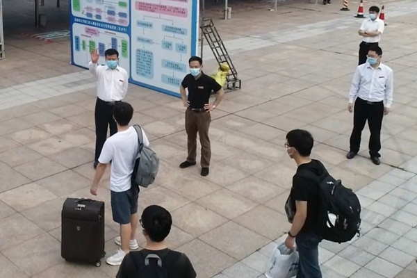 4月20日早上9时许,从钦州东站乘专车返校的第一批湾大毕业生30多人抵达南门。“欢迎同学们回来!”迎候多时的学校党委书记赵君、党委副书记陈湘如热情地向学生挥手致意,返校学生则报以热烈的掌声。“谢谢书记!谢谢老师!”“好开心!终于回到学校了!”平静太久的校园因为热情洋溢的师生对话瞬间生动起来。在安保人员与老师的引导下,首批返校的毕业生整齐有序走向检测通道,扫码进入校园后或步行或乘坐校园交通车回到宿舍。...