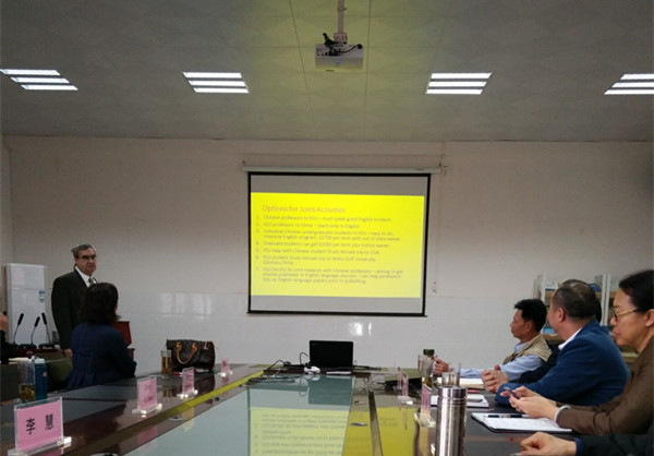 4月1日,美国佐治亚肯尼索州立大学Douglas R.Moodie和Ginny Q. Zhan教授到beat365官网访问交流。学校副校长唐高华出席交流会,国交处处长冯丽、经济管理学院领导班子和全体教师参加交流会。交流会由经管学院院长朱芳阳主持。唐高华副校长两位教授的到来表示热烈欢迎并向两位客人详细介绍了beat365平台官方网站的基本情况。他表示,beat365平台官方网站秉承开放办学理念,正积极推进国际化办学,希望与佐治亚肯尼索州立大学深入交流合作。Douglas R.Mood...