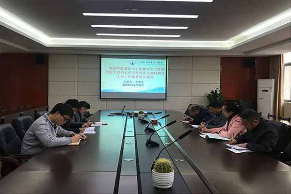 12月28日下午,电信学院党委理论中心组在5-419会议室集中学习贯彻习近平总书记在庆祝改革开放40周年大会上重要讲话精神。会议由电信学院党委书记卓杰先主持。会上,卓杰先书记围绕习近平总书记在庆祝改革开放40周年大会上重要讲话精神作了主题发言,结合自身的亲身经验与参会人员分享改革开放的心得体会。李贤阳副书记指出,全院师生要把学习宣传和贯彻落实习近平总书记重要讲话精神作为当前和今后一段时期的首要政治任务,全面...