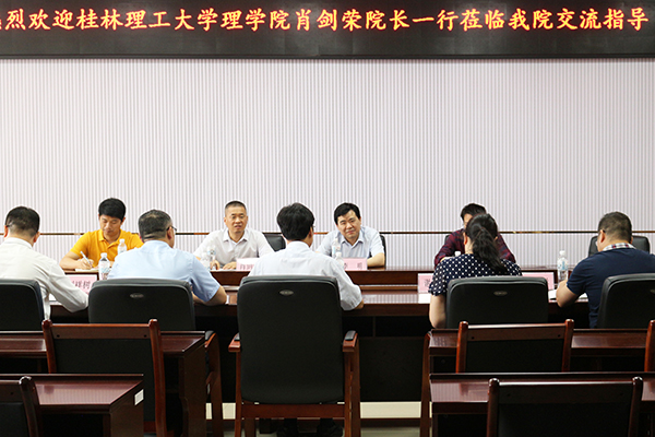 5月24日下午,桂林理工大学理学院院长肖剑荣一行四人到学校理学院调研交流。学院院长梁好翠、副院长谢文彬会见肖剑荣一行。座谈会上,梁好翠介绍了学院的发展历史、招生规模、师资力量、办学特色、科研成果和发展规划等,他希望以“十四五”规划为契机,加强双方的交流与合作,在教学和科研等方面共同发展。肖剑荣对桂林理工大学理学院的基本情况做了简要介绍,表示希望双方在联合培养硕士研究生、科研项目合作、优质生源共享、...