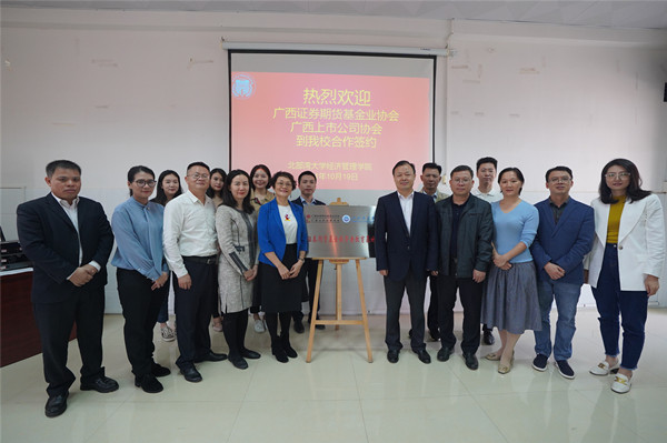 10月19日上午,学校经济管理学院与广西证券期货基金业协会、广西上市公司协会在4号教学楼301会议室举行校企合作座谈会暨校企合作协议签订仪式。经管学院院长朱芳阳、党委书记许旭志、副院长王柏玲、副书记覃志武,广西证券期货基金业协会副会长龙慧娟、副秘书长陆海青,广西上市公司协会副秘书长杨芳等出席会议。朱芳阳阐述了加强校企合作对应用型大学转型的重要意义,强调要以实践基地为依托,切实提高学生应用技能,同时希望...
