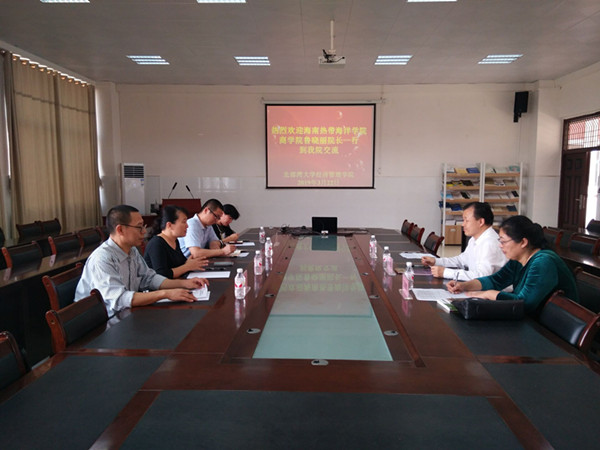 3月23日,海南热带海洋学院商学院院长鲁晓丽一行四人来我院考察交流并举行座谈会。经济管理学院院长朱芳阳出席并主持交流会。会议主要就北部湾海洋经济研究院建设、物流管理专业人才培养方案、实验室建设及党建工作制度等进行交流。朱芳阳院长详细介绍了北部湾海洋经济研究院的设立、经费管理、人员管理及与地方合作等运作情况。双方就流管理专业人才培养方案、实验室建设及党建工作等进行了深入交流探讨。会后,占金刚陪同鲁...