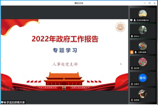 3月29日下午,受疫情影响,人事处党支部全体成员通过腾讯会议线上开展了《2022年政府工作报告》专题党课学习,会议由支部书记陆安山同志主持,罗孟同志领学。罗孟从2021年工作回顾、2022年经济社会发展总体要求和政策取向、2022年政府工作任务三部分带领大家在报告的学习中回顾去年国家发展的波澜壮阔,感受今年发展的迎风破浪,展望明年发展的欣欣向荣。党员同志们认为在此次学习中,加深了对国家过去发展的认识,国家现阶段发...