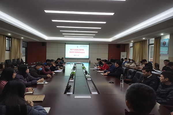 1月9日下午,电子与信息工程学院在5号教学楼419会议室召开党史学习教育总结会。该院党委书记卓杰先作总结讲话,学院全体教师党员及在校的学生党员参会。卓杰先全面回顾总结了学院党史学习教育的开展情况,并对党史学习教育成果的巩固深化作部署。她指出,学院积极响应上级党委号召,紧紧围绕学史明理、学史增信、学史崇德、学史力行的目标要求,加强组织领导,强化责任落实,不断丰富学习内容,通过线上“鲜活学”和线下“沉浸...