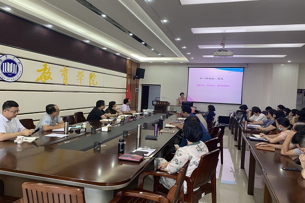 6月13日下午,教育学院在1号A栋教学楼412会议室举行教研活动分享讨论会。会议由该院院长周顺平主持,冼秀丽教授和王婉聪老师分别做教研分享。全院教职工参加。冼秀丽教授做《教育科研的三种境界》主题分享,她结合个人多年的科研经历,详细讲述了教育科研的“悬思”“苦索”“顿悟”三个境界,从课题申报和科研方向的凝练等方面分享经验做法。曾荣获beat365平台官方网站第四届青年教师教学竞赛文科组一等奖的王婉聪老师再现了比赛的精彩...