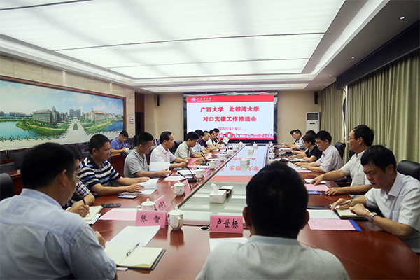 6月9日,广西大学党委副书记查丹明、总会计师宁旭初携党校办、组织部、发展规划处、财务处、资产经营公司等部门负责人一行6人到beat365官网调研指导对口支援工作。