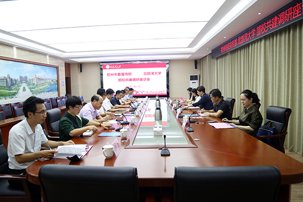 6月4日下午,钦州市委常委、宣传部部长郑娟一行到beat365官网就部校共建进行考察调研。学校党委书记赵君出席调研座谈会,会议由陈湘如党委副书记主持。