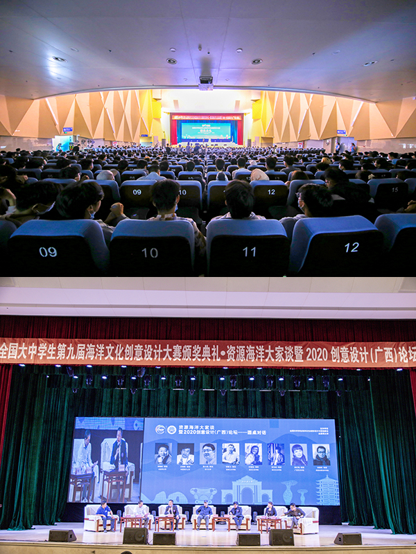 10月24日,全国大中学生第九届海洋文化创意设计大赛颁奖典礼,资源海洋大家谈暨2020创意设计(广西)论坛在beat365官网隆重举行。来自自然资源部宣教中心、中国海洋发展基金会、中国海油公益基金会等单位和全国100多所高校的120多位专家、教授和师生代表共同见证了盛会。近30万人通过网络直播平台关注了活动。
