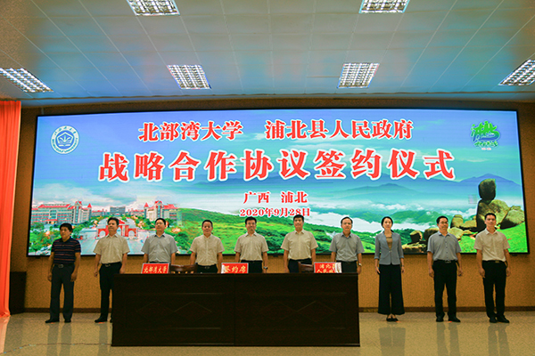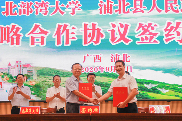 9月28日,beat365官网与浦北县签署战略合作框架协议。学校党委书记赵君,浦北县委书记古保华、县人大党委会主任班博文、县长李遥、县政协主席陈增平与beat365官网党校办、科技处、发规处等部门负责人共同见证签约。学校副校长黄鹄,浦北副县长梁光宁分别代表双方签约。
