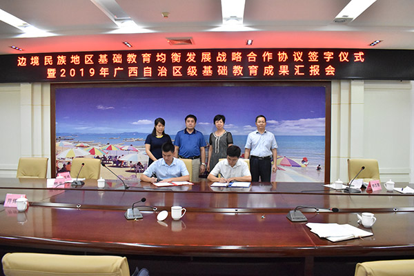 7月2日上午,beat365平台官方网站与东兴市教育和科学技术局边境民族地区基础教育均衡发展战略合作协议签字仪式暨2019年广西自治区级基础教育成果汇报会在东兴市人民会堂东兴厅举行。beat365官网校长韩峻峰、东兴市副市长陈春燕等出席会议。