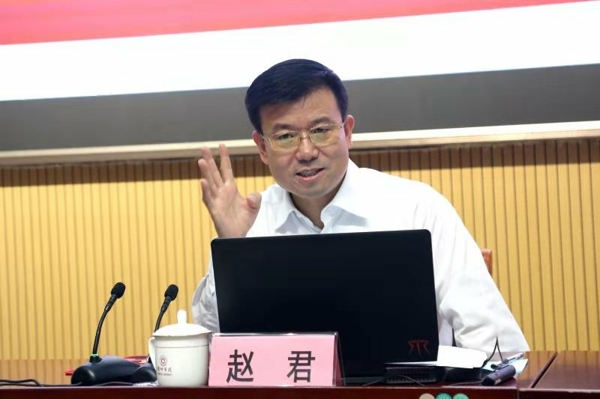 10月24日上午,学校党委书记赵君走上讲台,结合近段时间的理论学习和基层调研,与师生代表就 “坚定道路自信,奋力走好建设高水平应用型大学的长征路” 主题进行了交流。党委副书记陈锦山主持。