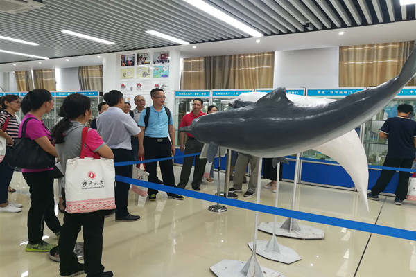 参会人员参观beat365官网海洋学院海洋生物标本展厅