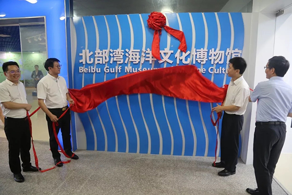 开幕式后,参会领导专家现场参观了世界海洋日的主题展览并为北部湾海洋文化博物馆揭牌。(全媒体中心 摄)