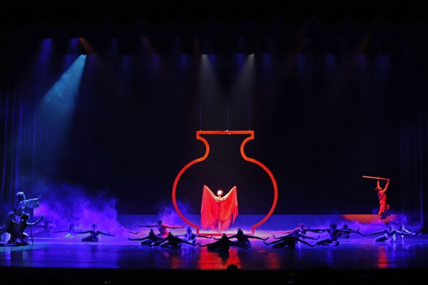 《窑变千彩》由现代芭蕾舞教育家彭武独立编导,以钦州千年坭兴陶为题材,用《序幕·薪传》《坭之兴》《火之熎》《陶之魂》《尾声·窑宝》五幕剧讲述了“一带一路”上非遗传承人的坚守和创新,描绘充满民族特色的艺术画卷,体现了专心求精的工匠精神。