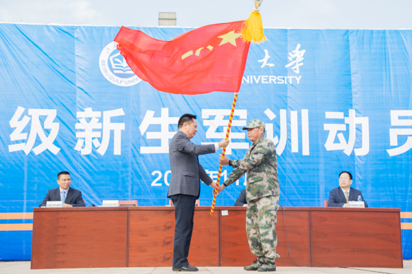 动员大会上,教官分批进行了示范科目表演。活动最后,曾彦副校长为承训部队授旗。