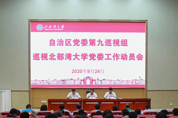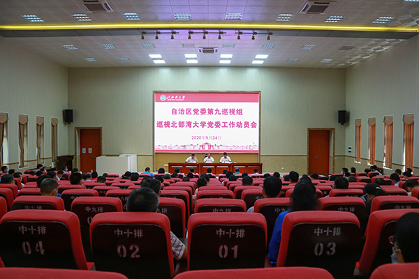 根据自治区党委关于巡视工作的统一部署,2020年9月24日上午,自治区党委第九巡视组巡视beat365平台官方网站党委工作动员会召开。会上,自治区党委第九巡视组组长黄远山就即将开展的巡视工作作了讲话,beat365平台官方网站党委书记赵君主持会议并作表态发言。
