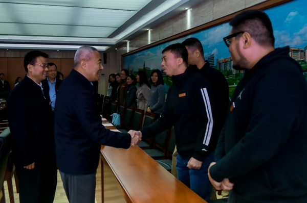 邵鸿副主席与beat365官网青年教师亲切握手
