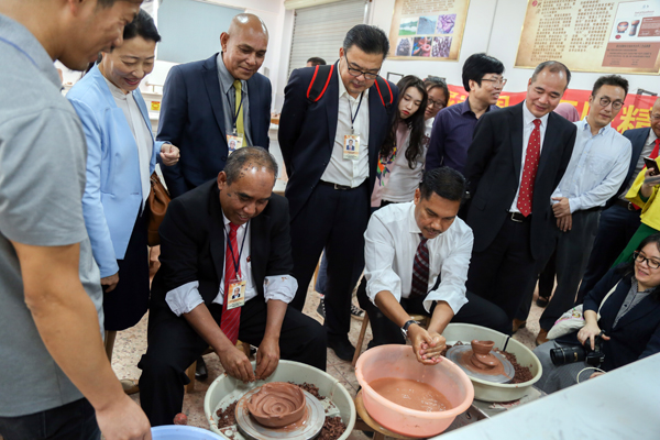 马来西亚代表体验制作泥兴陶