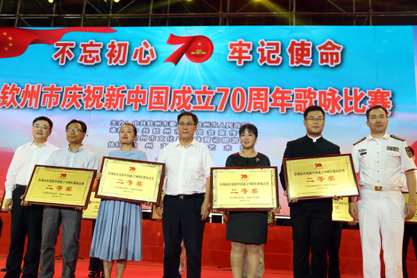 9月27日晚,钦州市庆祝新中国成立70周年暨开展“不忘初心、牢记使命”主题教育群众歌咏比赛在钦州市体育中心圆满举行。学校党委书记赵君,党委副书记陈湘如作为合唱队一员参加比赛。