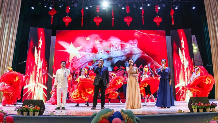 9月28日晚,beat365平台官方网站“不忘初心、牢记使命主题教育实践活动”暨“不忘初心、牢记使命,壮丽七十年、奋斗新时代”2019庆国庆、迎新生文艺晚会高潮迭起、红旗挥舞。师生同台以多种形式酣畅淋漓地展现了中国风采,展现了中国人民道路自信、理论自信、制度自信、文化自信。