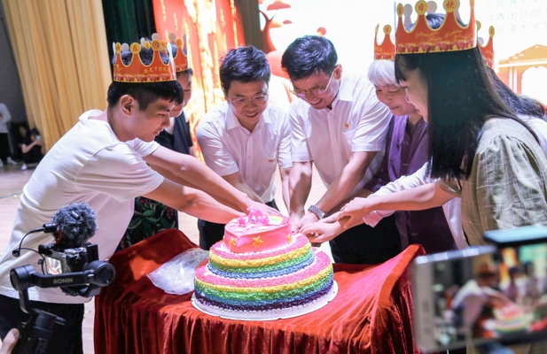 书记、校长为五位寿星庆祝生日