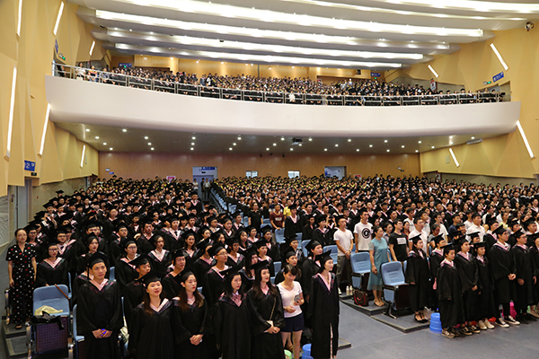各职能部门、各教学单位负责人、全体毕业生班主任、辅导员、教职工代表参加毕业典礼。(胡晓冰 农世龙 俞用庆 摄)