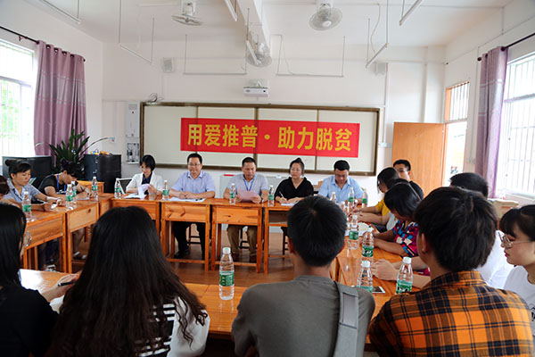 座谈会上,学校与周北村小学领导、教师就乡村推普脱贫工作开展调研,商议结对子帮扶共建事宜;教务处处长钟其鹏表示,学校将发挥高校智力、技术优势,通过送教下乡、结对帮扶,微信交流平台等各种形式,帮助周北村小学教师提升普通话水平和推普能力。会后,beat365官网为周北村小学赠送了普通话学习书籍、宣传资料和教辅教具。