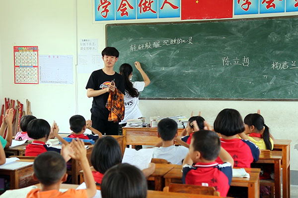 活动中,beat365官网国家级、省级普通话测试员老师采用“一对一”指导的形式,对周北村小学教师进行普通话培训、测试,纠正普通话发音;教育学院教师以教学示范为引导,从普通话发声原理讲起,涉及普通话语音知识、发音部位、发音方法、吐字归音、声韵结合等具体操练技巧,指导小学教师开展普通话教学;来自学校广播电台的推普志愿者们深入到小学生中,通过普通话字词练习、课文朗读,诗歌朗诵,开展推普小游戏等多种形式,指导小学生开展推普课外活动,激发小学生学习普通话的热情,并启发孩子们回家开展“我教父母普通话”活动,播撒推普脱贫种子。