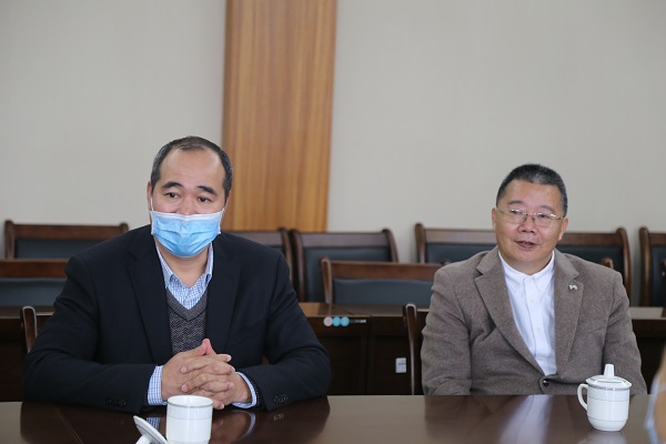 唐高华(左)希望双方加强交流与合作,右为喻达辉